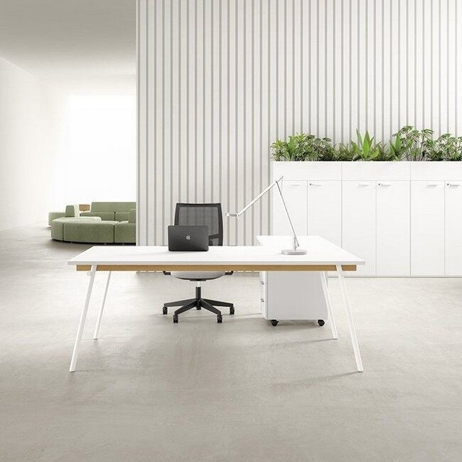 L’ADN de la collection KNOT puise son inspiration dans un minimalisme que l’on pourrait qualifier de japonais dans l’esprit. Cette influence se traduit par un équilibre subtil entre la rigueur du métal et la chaleur des options de plateaux, évoquant le style Japandi très prisé dans les environnements de travail actuels qui cherchent à adoucir l’atmosphère « corporate ». Le soin apporté aux détails, comme l’intégration délicate d’une poutre structurelle en bois (en option) ou l’absence de fioritures inutiles, positionne ce bureau comme un trait d’union entre le mobilier résidentiel et l’équipement professionnel robuste.