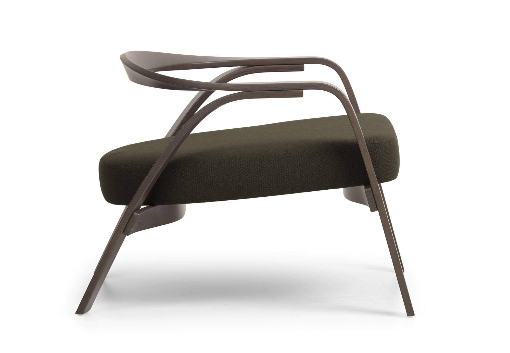 Avec sa structure en chêne thermo-courbée et plate, épaisse de 18 mm, le fauteuil d’hôtel de luxe GRILLO évolue du piétement au dossier par un jeu de torsions calibré, discret et unique. Les quatre pieds en bois, les accoudoirs et le pourtour horizontal qui englobe le dos de l’utilisateur s’assemblent, créant une silhouette fluide et accueillante sur laquelle s’étalent deux épais coussins rembourrés de mousse souple et résistante. Le travail des équilibres de l’assise, inclinée vers l’arrière de manière à soulager le bas du dos et détendre les jambes, optimise l’expérience de confort. GRILLO est un fauteuil d’hôtel haut de gamme destiné à la relaxation qui, grâce à sa charpente légère, n’encombre pas l’espace. Il convient aux petits espaces tels que les chambres d’hôtel, la partie bar de son restaurant, l’accueil de son SPA, ainsi qu’aux intérieurs plus vastes et minimalistes, épurés.